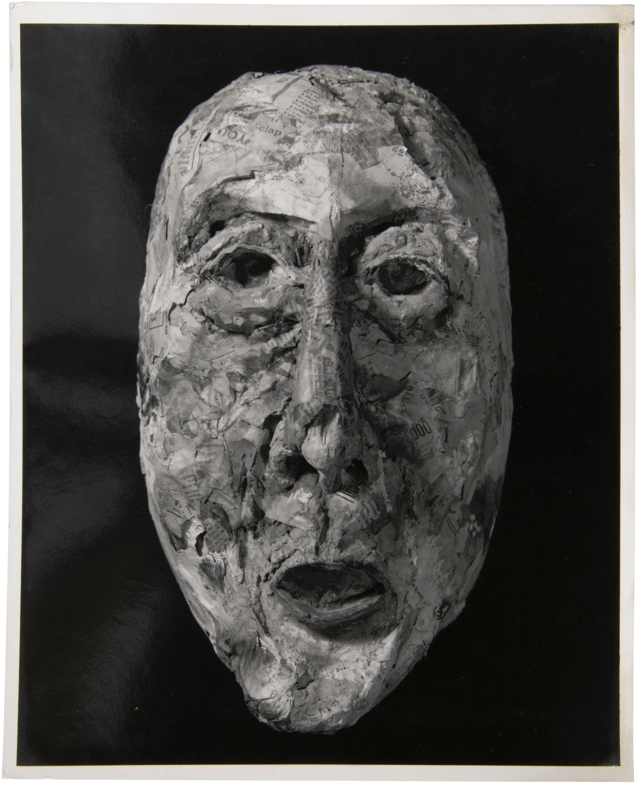 Though not strictly autobiographical, the work he made in papier-mâché throughout the 1950s references his experiences of the previous decade. Many of these early sculptures were masks, a subject that held great significance for a wide range of artists in the first half of the twentieth century. Notably, Picasso studied masks of the African tradition in depth as he worked towards his Cubist breakthrough, and masks were also a trope that deeply influenced the Surrealists. As a response to the horrors of war, as well as their allusive references to dreams and nightmares, visions, and netherworlds, masks were likewise a potent symbol for Harris and other artists of his generation, who explored the form in diverse materials. In California, for instance, Ruth Asawa had a side practice making masks in clay of her friends and contemporaries for thirty years, alongside her better-known sculptural practice. And in the Midwest, photographer Eugene Meatyard made a series of uncanny images of his children wearing misshapen and outlandish masks over their faces, transforming them into unrecognizable specters.